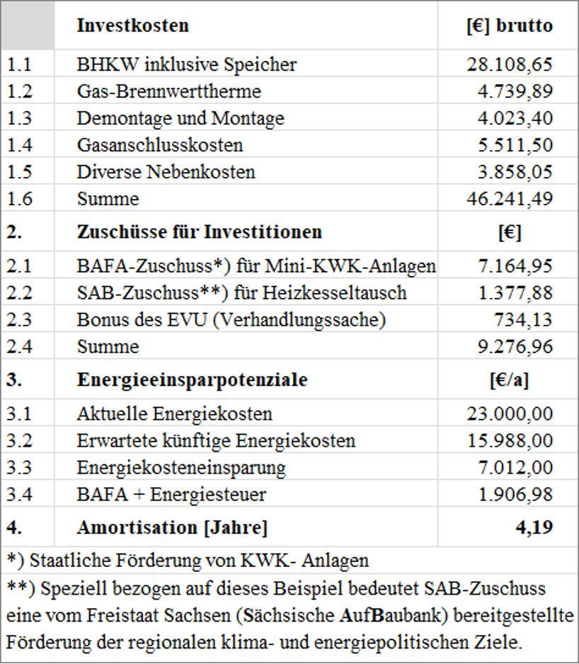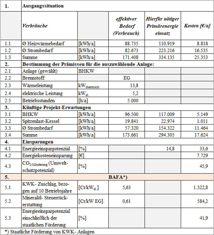 Eine Voraussetzung hierfür ist die Zulassung der Anlage durch das BAFA. Insofern stellt die dargestellte Berechnung ein exemplarisches Beispiel dar, in dem es nicht um die absoluten Werte geht, sondern darum, was auf das Facility Management an Daten und Angaben bei der Bearbeitung solcher Projekte zukommt. Drei der wichtigsten vorausgehenden Überlegungen sind:
