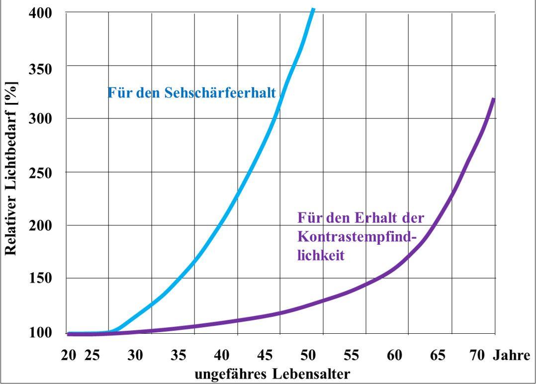 Beleuchtungsstärke und altersbedingte Anforderungen