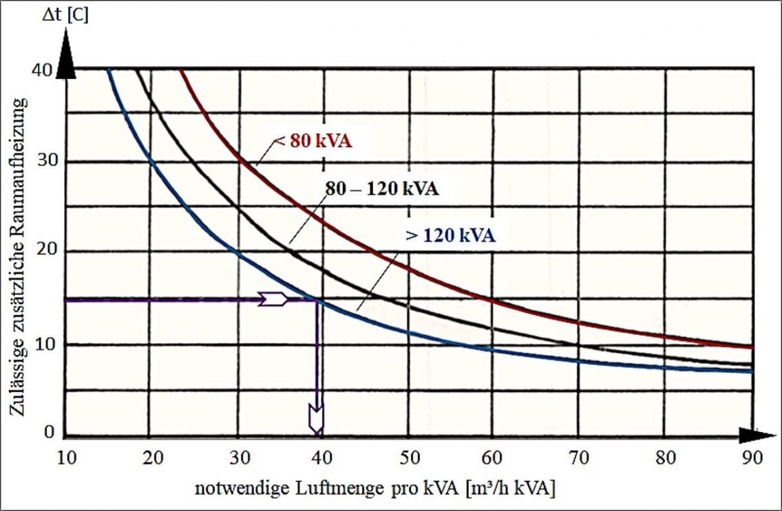und es besteht die Forderung, dass in Betriebsräumen von Netzersatzanlagen 40 °C - auch wegen des hier zeitweise arbeitenden Personals - nicht überschritten werden sollen.