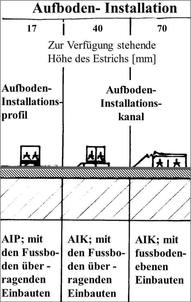 Es liegt auf der Hand, dass diese Methode bei großen Objekten, beispielsweise in Industriebetrieben, Büros, Fertigungsstätten, Krankenhäusern, Labors usw., wo es um große Kabelquerschnitte und eine Vielzahl zu verlegender Kabel geht, nicht angewendet werden kann. Hier sind andere Formen der Geschossverteilung einzusetzen. In größeren Bürogebäuden beispielsweise wendet man die Unterflur-Elektroinstallation an.