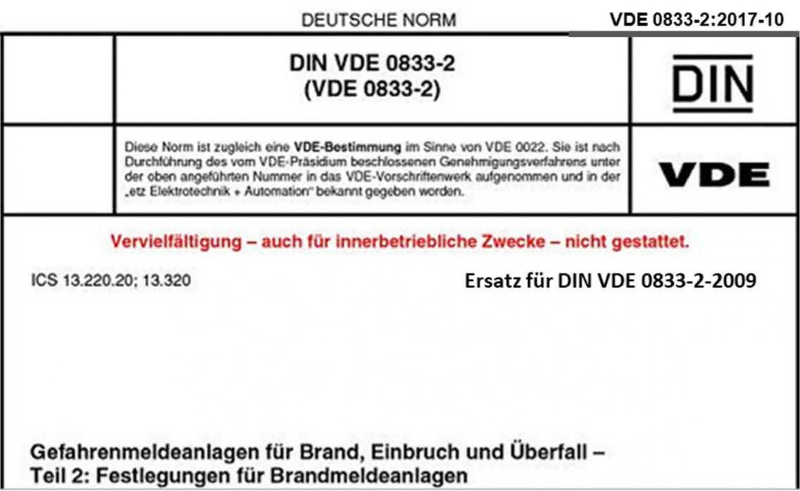 VDE 0833 Gefahrenmeldeanlagen für Brand, Einbruch und Überfall: